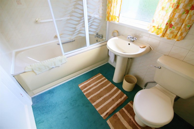 Upvc obscured double glazed window to rear aspect. A part tiled suite comprising: panelled bath with shower over. Pedestal wash hand basin, low flush W.C. Extractor fan. Wall mounted electric heater.
