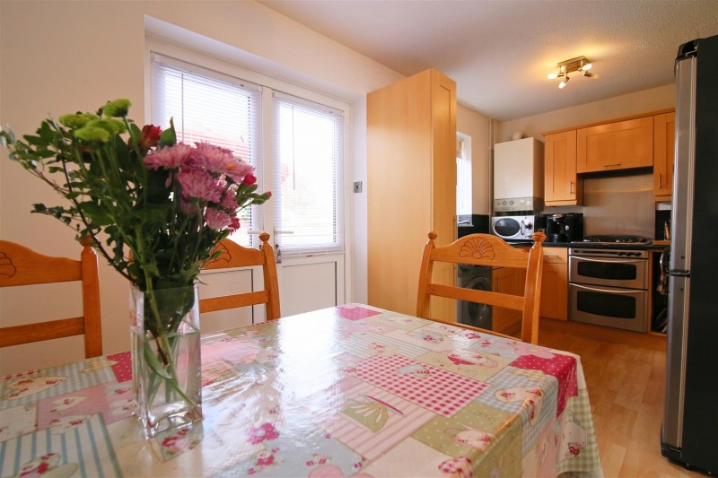Upvc double glazed french doors onto rear garden. Upvc double glazed window to rear aspect. Further Upvc double glazed window to rear aspect. A range of eye and base level units with work top surfaces, inset one a half stainless steel sink with drainer and mixer tap over. Tiled splash back areas. Fitted four ring gas hob with extractor over and electric double oven below. Space and plumbing for washing machine. Space for fridge/freezer. Wall mounted combi boiler. Radiator.