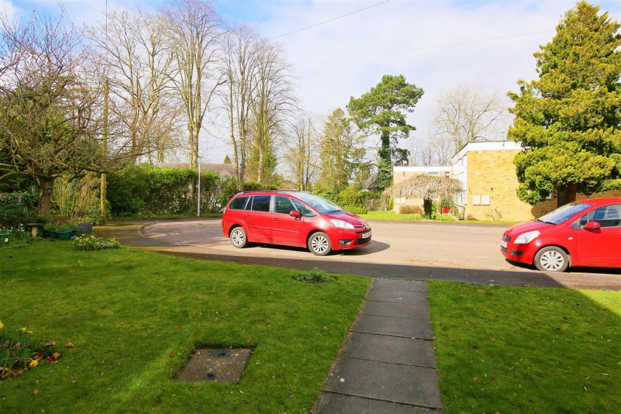 Communal parking area with laid to lawn communal gardens. Path leading to rear garden. Door to: