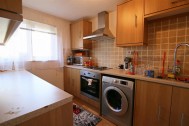 Eye and base level units with roll top work surfaces, inset stainless steel sink unit with drainer and swan neck mixer tap over. Tiled splash back area. Built in four ring electric hob with fan assisted electric oven below and extractor over. Space and plumbing for washing machine, space for fridge/freezer. Upvc double glazed window to front aspect. Wooden flooring.