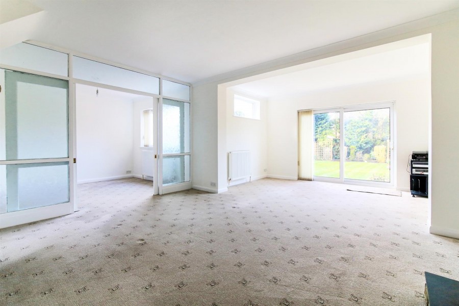 Upvc double glazing sliding patio doors onto rear garden. Upvc double glazed window to the side aspect. Two radiators. Feature brick fireplace with gas fire. Door to cupboard. Coving to ceiling, wall lights. Glazed sliding doors to: