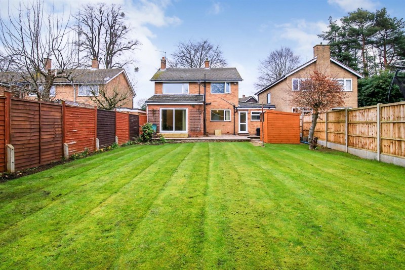 Enclosed rear garden with paved patio area. Lawn area with planting borders, further planting beds with various shrubs and plants. Garden shed. Access to side leading to frontage.