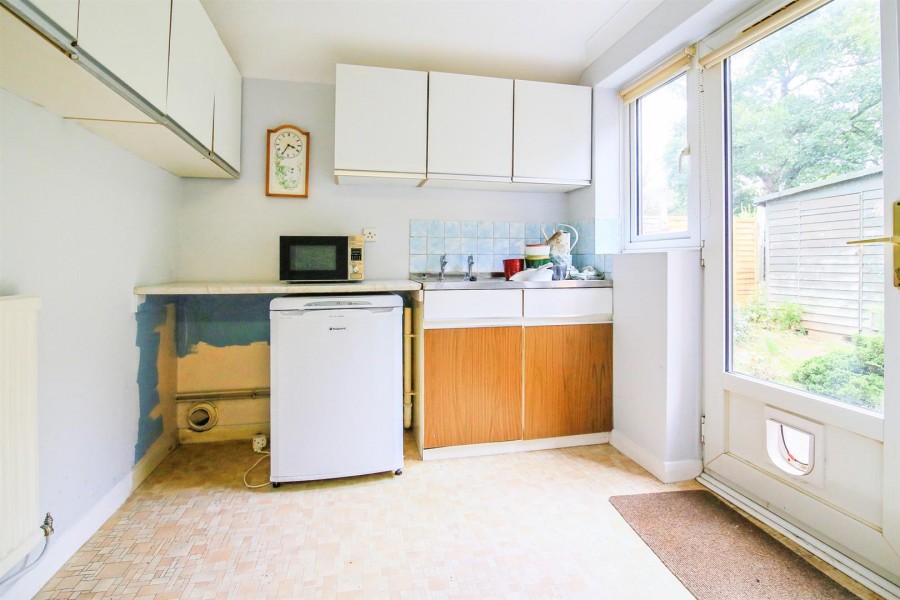 Upvc double glazed door onto the rear garden. Upvc double glazed window to the rear aspect. Eye and base level units with work top surfaces, inset stainless steel sink with drainer. Tiled splash backs. Space for washing machine and tumble dryer. Wall mounted gas boiler. Radiator.