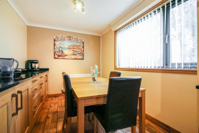 Two double glazed windows to the rear aspect. A range of eye and base level units with granite work top surfaces, inset one and a half sink with drainer. A range of fitted appliances to include: five ring gas hob with extractor over, oven, microwave, dishwasher and fridge. Tiled flooring, radiator. Door to: