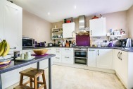 Upvc double glazed door to the rear aspect onto the driveway. Upvc double glazed window to the rear aspect. A range of eye and base level units with work top surfaces, inset one and a half stainless steel sink with drainer and mixer tap over, tiled splash backs. Inset 'NEFF' five ring gas hob with double oven below and 'Bosch' extractor over. Space for fridge/freezer. Fitted dishwasher. Radiator, tiled flooring. Ceiling spotlights. Breakfast bar.