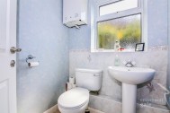 Upvc obscure double window to the side aspect. Part tiled. Low level w.c, wash hand basin. Wall mounted gas boiler.