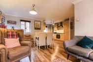 Double glazed window to front aspect. A range of base, drawer and wall units with worktops, integral gas hob, electric oven and extractor. Integral washing machine, dishwasher, fridge and freezer. Hard flooring. Cupboard housing gas boiler.
