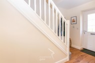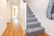 Stairs to first floor. Polyflor bevel line flooring. Doors to: