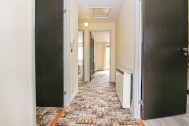 Enter via wooden glazed door. Cupboard housing electric meter. Access to loft space. Further cupboard. Wall mounted electric heater. Doors to: