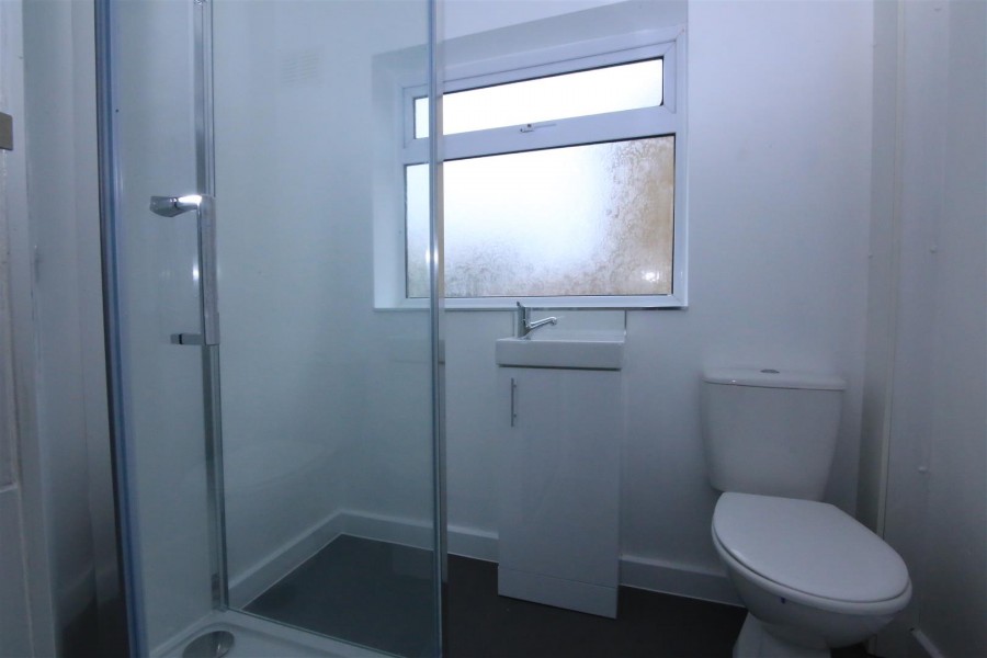 Double glazed obscure window to the side aspect. A part tiled suite comprising: fully tiled shower cubicle. Low level w.c, wash hand basin. Tiled flooring, extractor.