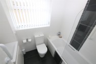 Panelled bath with shower fitted over. Toilet and washbasin. Double glazed window to side aspect.